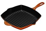 Le Creuset Enameled Cast-Iron 10-1/4-Inch Square Skillet Grill, Caribbean From savory vegetables to mouthwatering steak, chicken and shrimp, the square Skillet Grill gives all the delicious flavor of an outdoor grill, then presents foods beaut